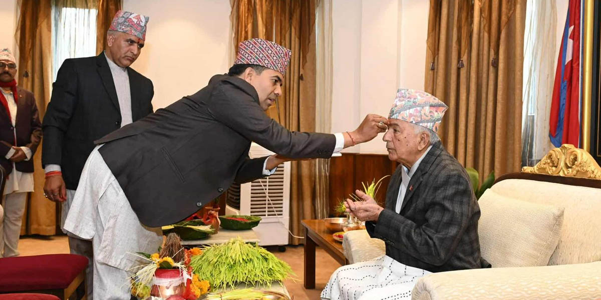 उनले हनुमान ढोका दरवारका गुरु देवराज आर्याल तथा राष्ट्रपतिका पुरोहित अर्जुनप्रसाद न्यौपानेबाट टीका र जमरा ग्रहण गरेका हुन् ।